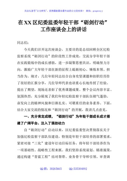 / 在XX区纪委监委年轻干部“砺剑行动”工作座谈会上的讲话