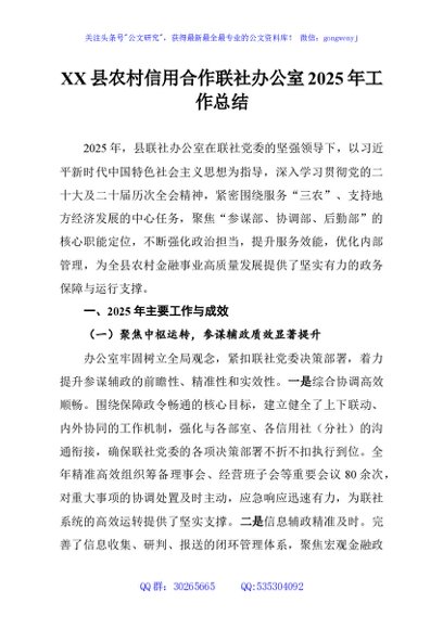 / XX县农村信用合作联社办公室2025年工作总结