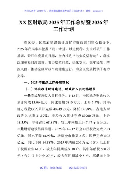 / XX区财政局2025年工作总结暨2026年工作计划