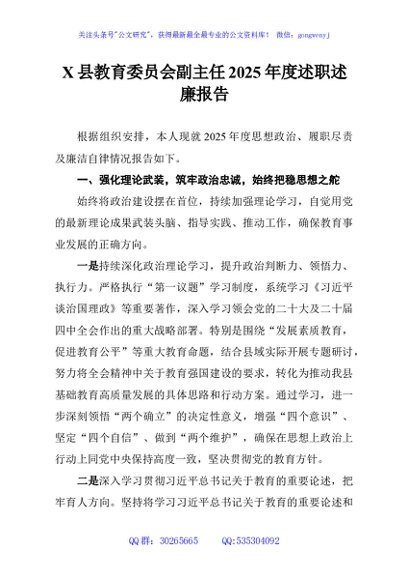 / X县教育委员会副主任2025年度述职述廉报告