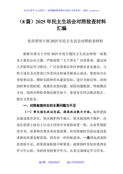 / (8篇)2025年民主生活会对照检查材料汇编