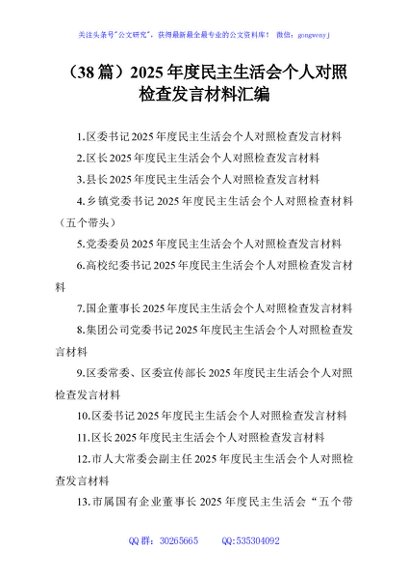 / (38篇)2025年度民主生活会个人对照检查发言材料汇编