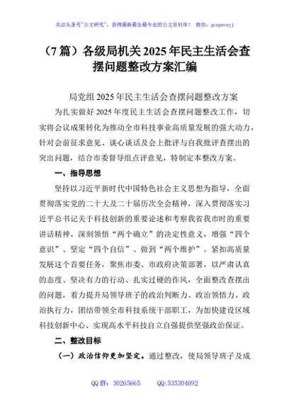 / (7篇)各级局机关2025年民主生活会查摆问题整改方案汇编