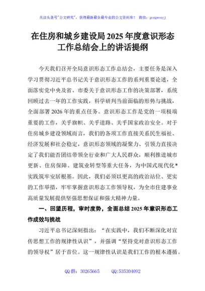 / 在住房和城乡建设局2025年度意识形态工作总结会上的讲话提纲