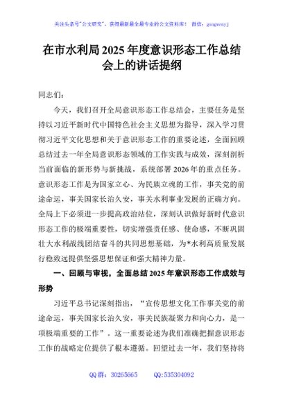/ 在市水利局2025年度意识形态工作总结会上的讲话提纲