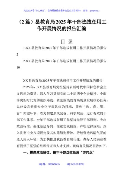 / (2篇)县教育局2025年干部选拔任用工作开展情况的报告汇编
