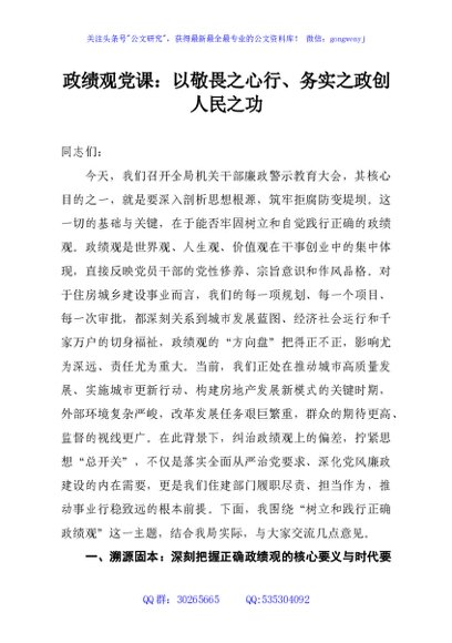 / 政绩观党课:以敬畏之心行、务实之政创人民之功
