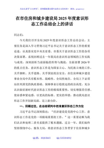 / 在市住房和城乡建设局2025年度意识形态工作总结会上的讲话