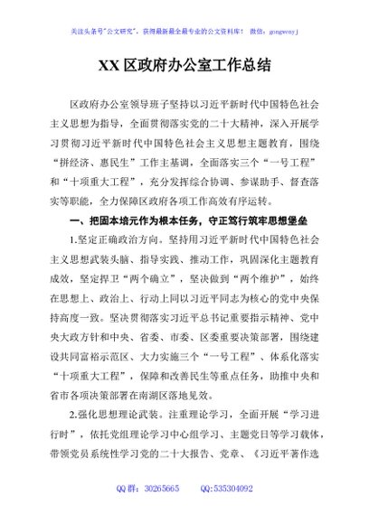 / XX区政府办公室工作总结
