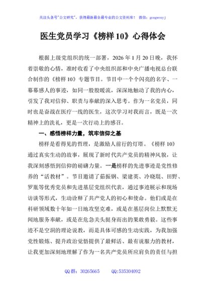 / 医生党员学习《榜样10》心得体会
