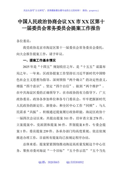 / 中国人民政治协商会议XX市XX区第十一届委员会常务委员会提案工作报告