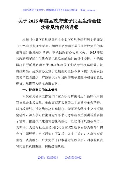 / 关于2025年度县政府班子民主生活会征求意见情况的通报