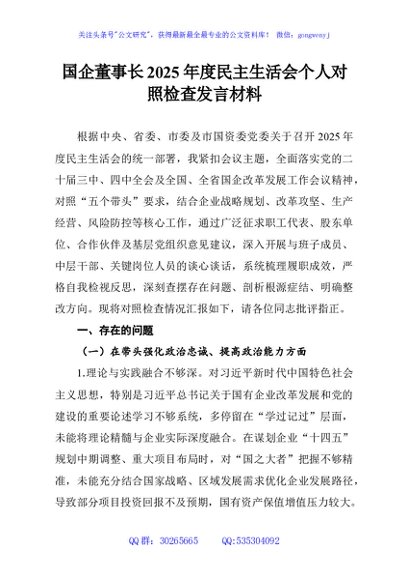 / 国企董事长2025年度民主生活会个人对照检查发言材料