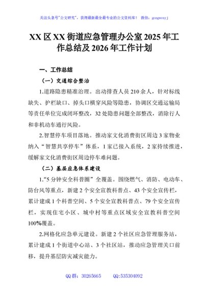 / XX区XX街道应急管理办公室2025年工作总结及2026年工作计划