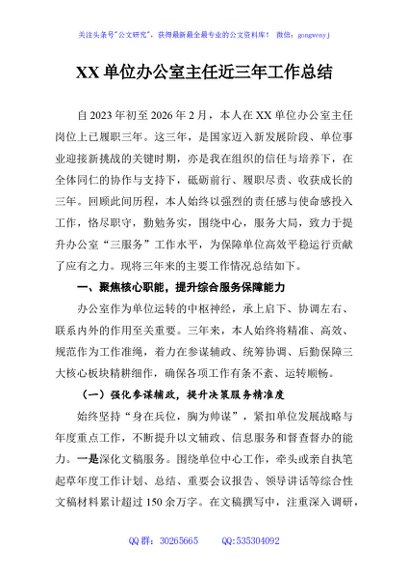 XX单位办公室主任近三年工作总结