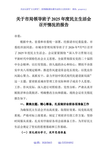 未生成预览图,长按二维码添加 关于市局领导班子2025年度民主生活会召开情况的报告 - 公文研究