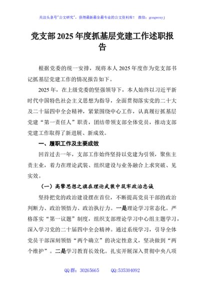 未生成预览图,长按二维码添加 党支部2025年度抓基层党建工作述职报告 - 公文研究