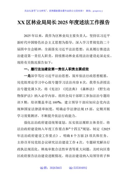 未生成预览图,长按二维码添加 XX区林业局局长2025年度述法工作报告 - 公文研究