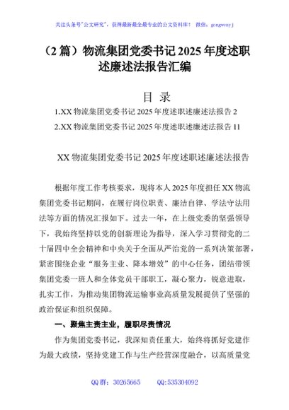 / (2篇)物流集团党委书记2025年度述职述廉述法报告汇编