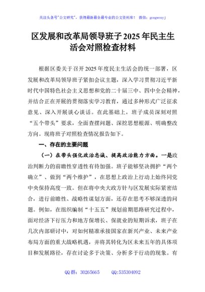 / 区发展和改革局领导班子2025年民主生活会对照检查材料