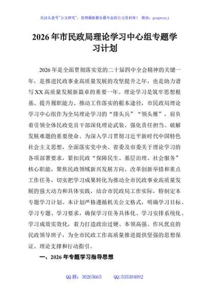 / 2026年市民政局理论学习中心组专题学习计划