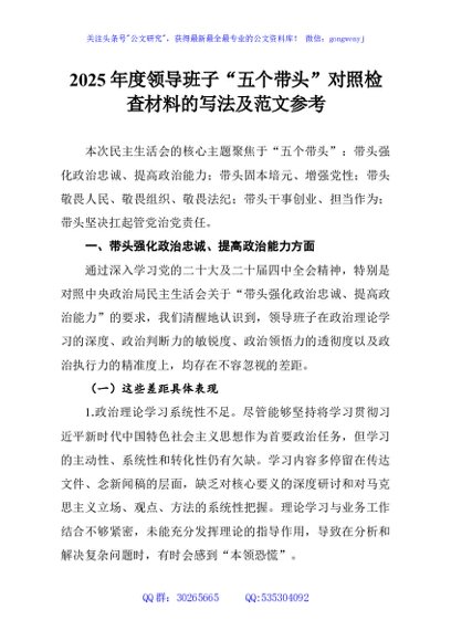 2025年度领导班子“五个带头”对照检查材料的写法及范文参考