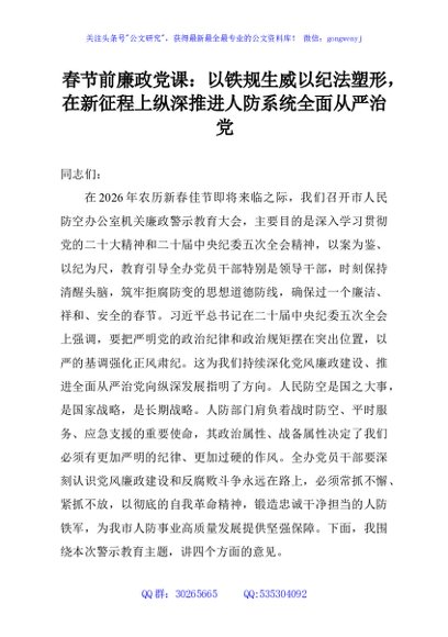 / 春节前廉政党课:以铁规生威以纪法塑形,在新征程上纵深推进人防系统全面从严治党
