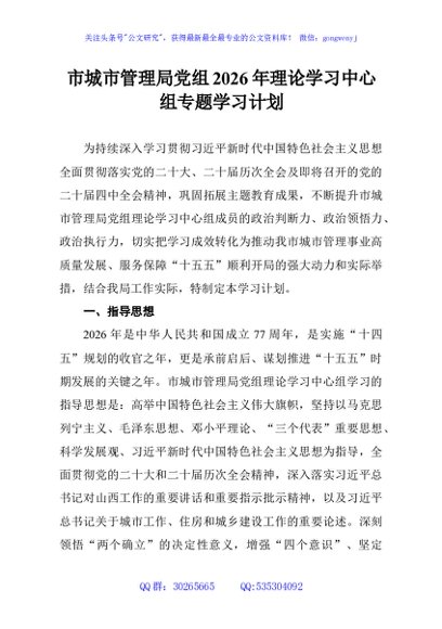 / 市城市管理局党组2026年理论学习中心组专题学习计划