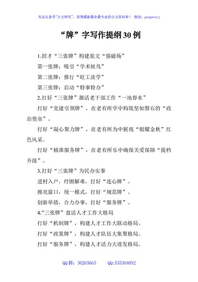 / “牌”字写作提纲30例
