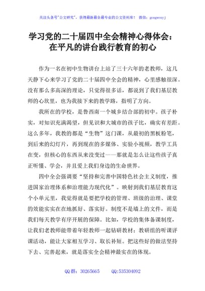 / 学习党的二十届四中全会精神心得体会:在平凡的讲台践行教育的初心