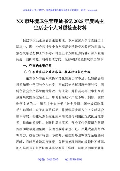 / XX市环境卫生管理处书记2025年度民主生活会个人对照检查材料