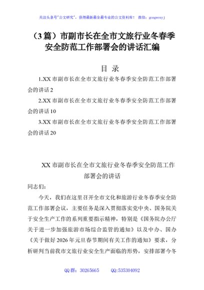 (3篇)市副市长在全市文旅行业冬春季安全防范工作部署会的讲话汇编