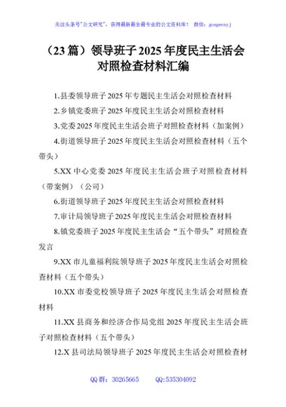 / (23篇)领导班子2025年度民主生活会对照检查材料汇编