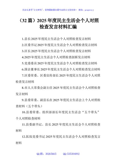 / (32篇)2025年度民主生活会个人对照检查发言材料汇编
