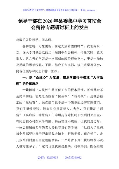 / 领导干部在2026年县委集中学习贯彻全会精神专题研讨班上的发言