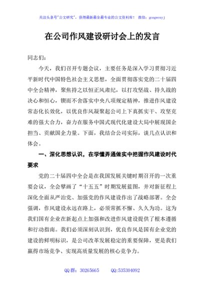/ 在公司作风建设研讨会上的发言