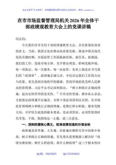 / 在市市场监督管理局机关2026年全体干部政绩观教育大会上的党课讲稿