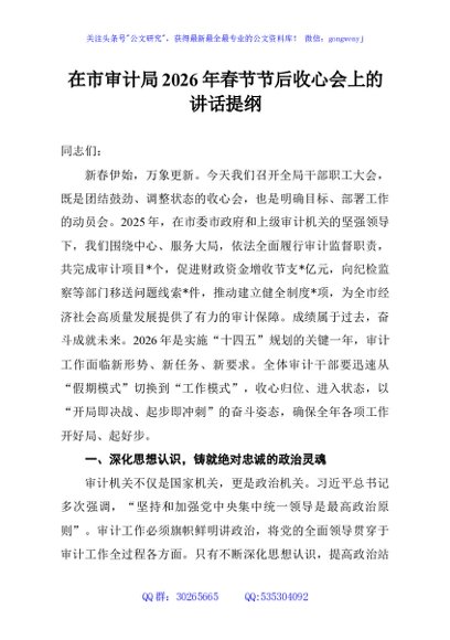 / 在市审计局2026年春节节后收心会上的讲话提纲