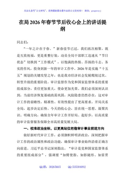/ 在局2026年春节节后收心会上的讲话提纲