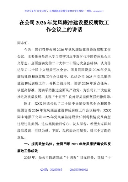 / 在公司2026年党风廉洁建设暨反腐败工作会议上的讲话
