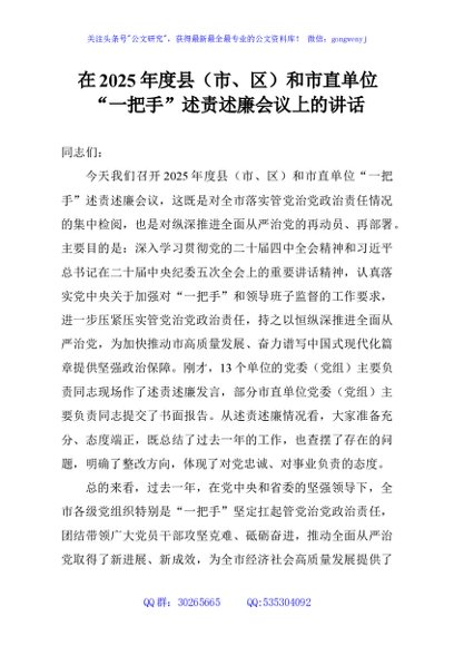 / 在2025年度县(市、区)和市直单位“一把手”述责述廉会议上的讲话