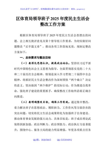 / 区体育局领导班子2025年度民主生活会整改工作方案