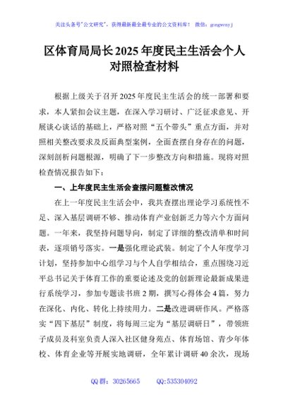 / 区体育局局长2025年度民主生活会个人对照检查材料