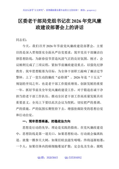 / 区委老干部局党组书记在2026年党风廉政建设部署会上的讲话