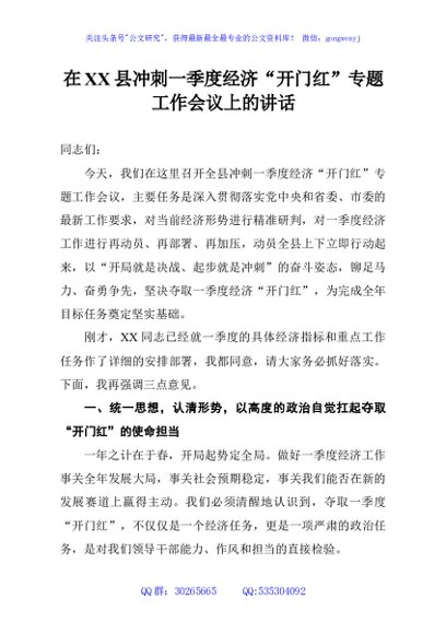 / 在XX县冲刺一季度经济“开门红”专题工作会议上的讲话