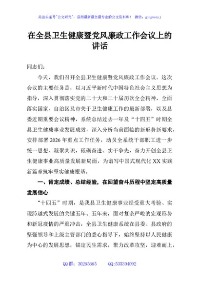 / 在全县卫生健康暨党风廉政工作会议上的讲话