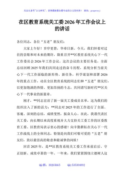/ 在区教育系统关工委2026年工作会议上的讲话