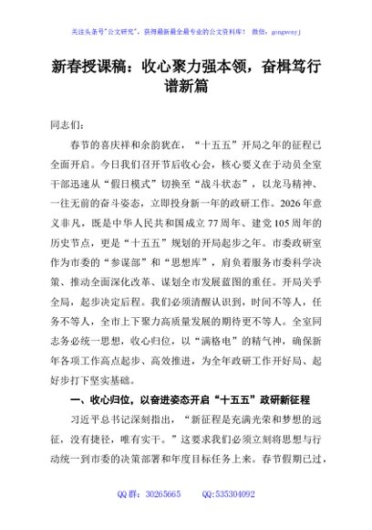 未生成预览图,长按二维码添加 新春授课稿:收心聚力强本领,奋楫笃行谱新篇 - 公文研究