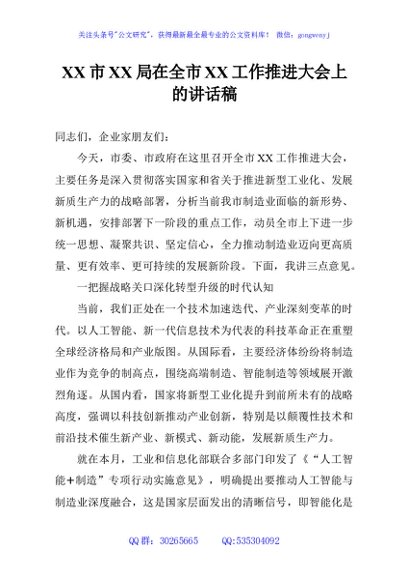 / XX市XX局在全市XX工作推进大会上的讲话稿