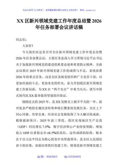 / XX区新兴领域党建工作年度总结暨2026年任务部署会议讲话稿